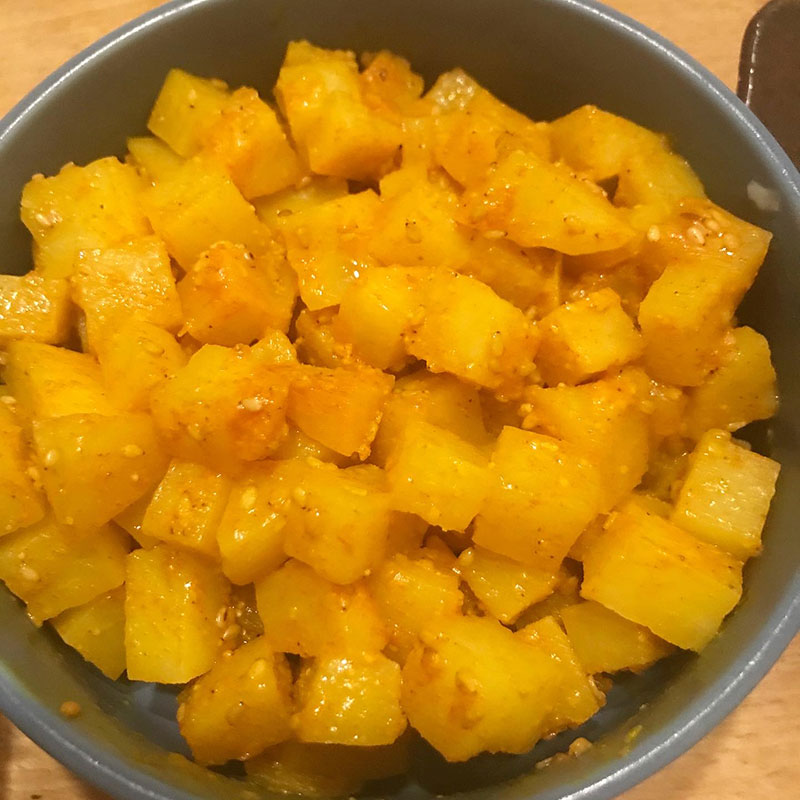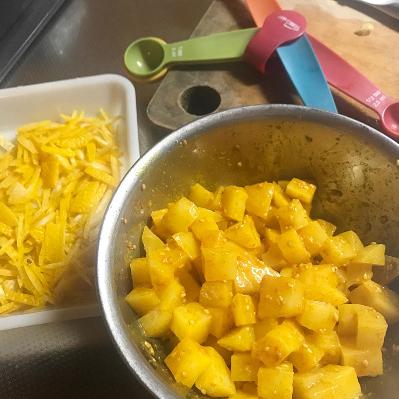 果汁は絞ってターメリックなどと和えてじゃがいものナムルに。