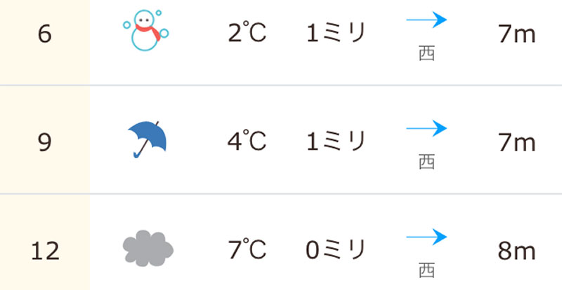 仕事で出かけるエリアに雪マークついてるので