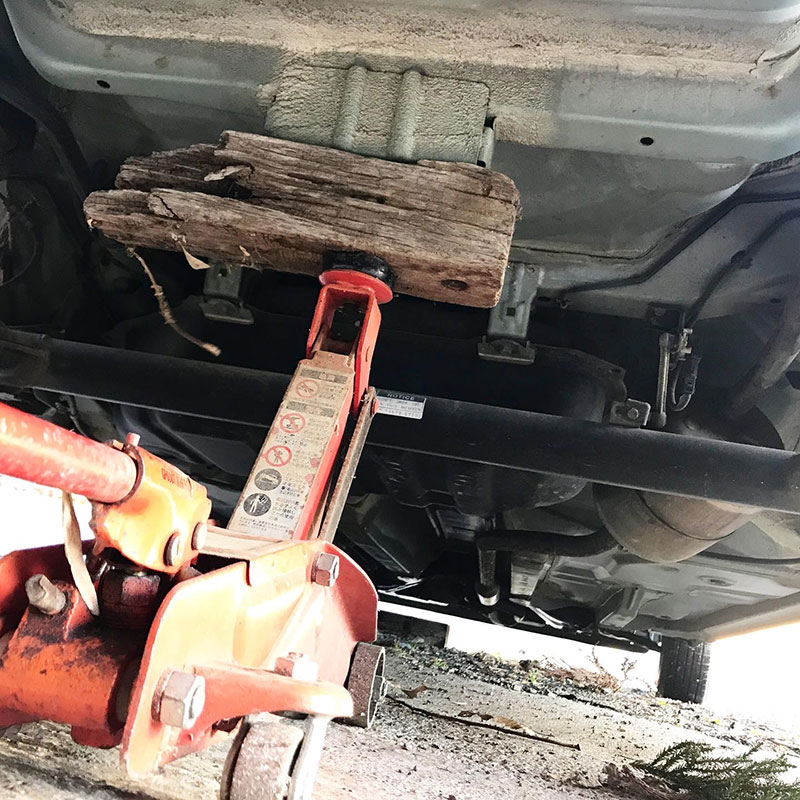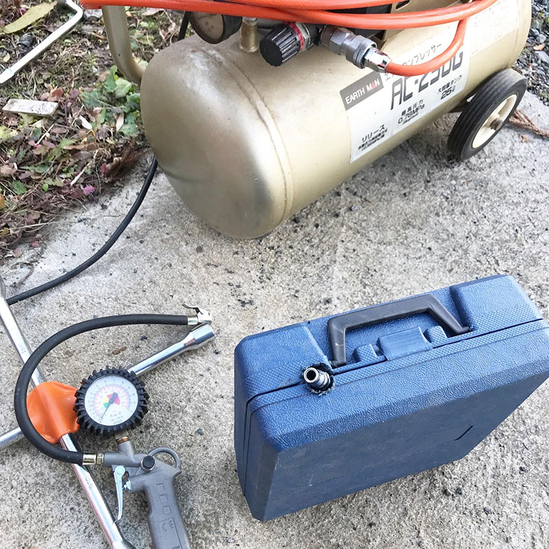 フロアジャッキとコンプレッサーではかどる。
