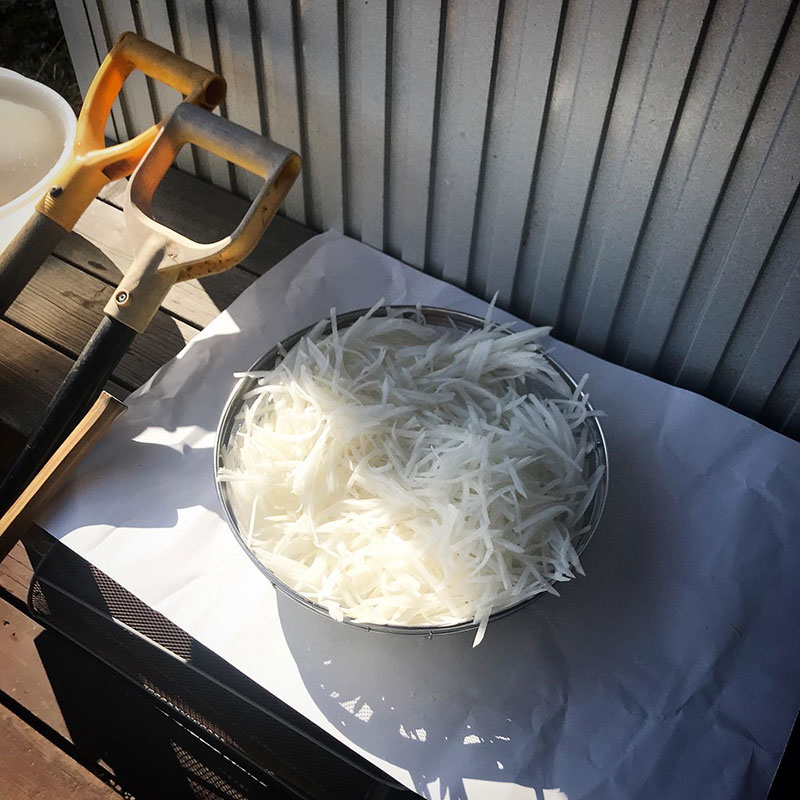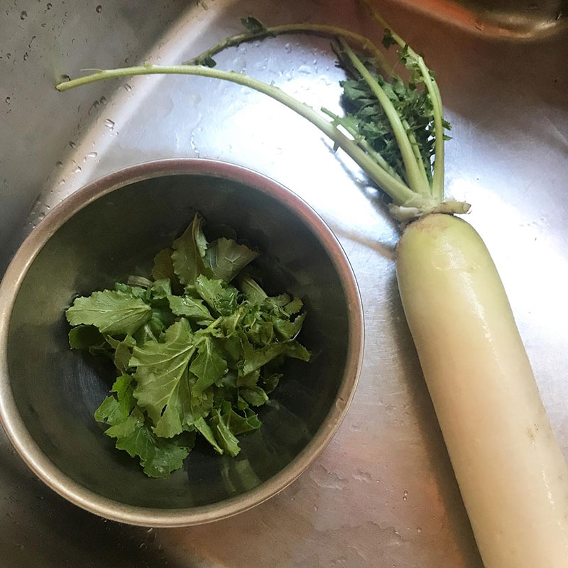 ご飯と混ぜれば美味しい美味しい大根菜飯。