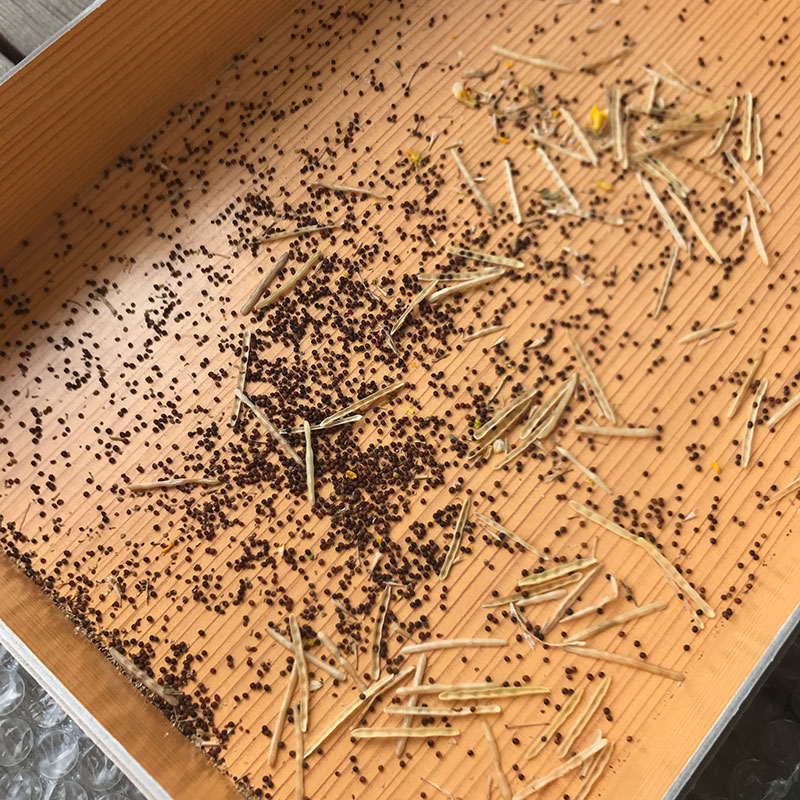 種を集められる。からし菜の粒マスタードやスパイスカレーのマスタードシードにする。