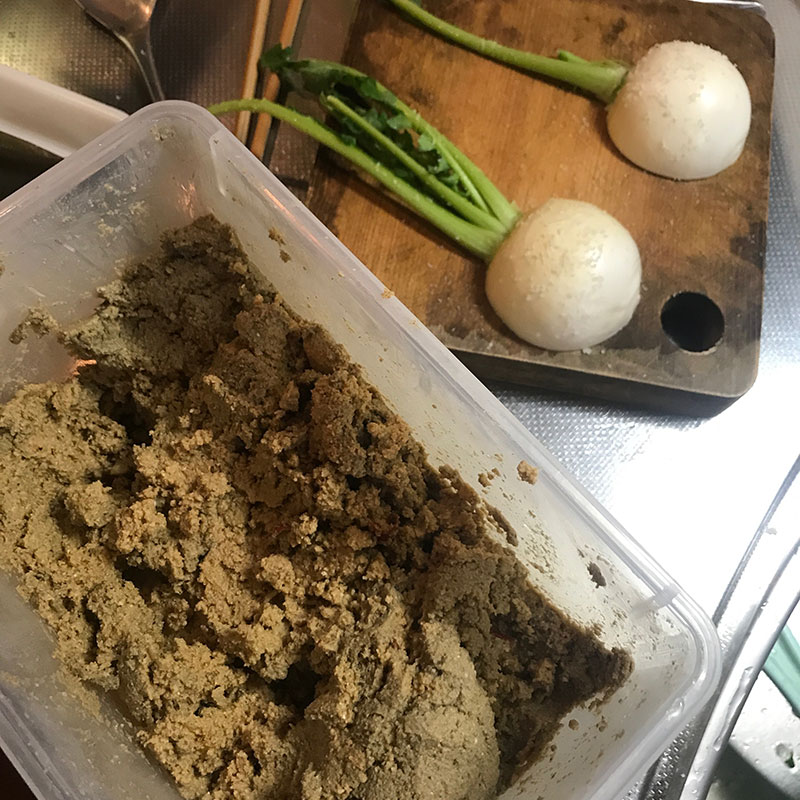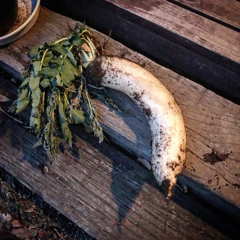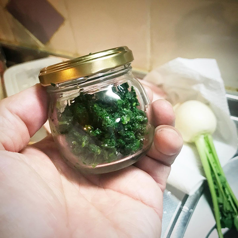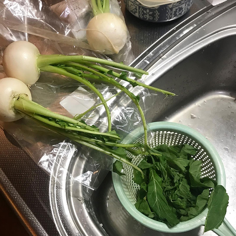 寒さに負けないように糖を蓄えてる今が旬のカブの美味しい事。カブばかり食べてるよ。産直広場あぐりっとで売ってるカブの葉がとても大きいので茎を残してしごいて、