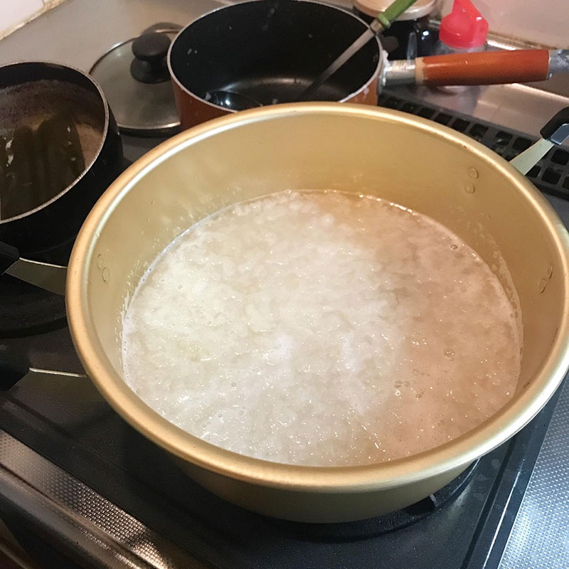一昼夜水に浸けてた水出し昆布の出汁と合わせた。