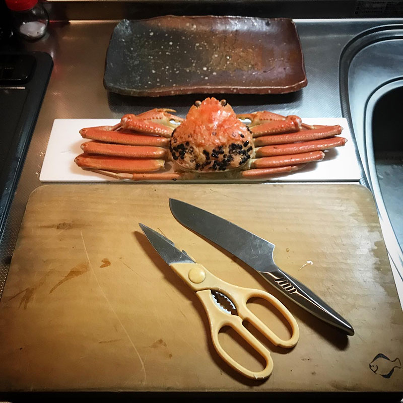 今宵のメインはいただいた高級カタログから正月用に選んだズワイガニ。