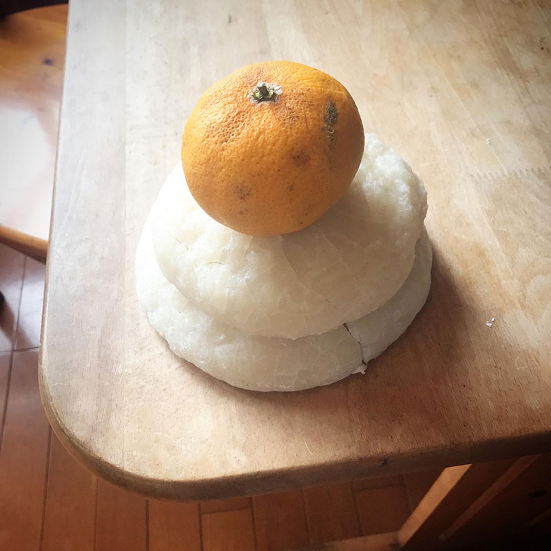 鏡餅のカビをナイフで削り取って