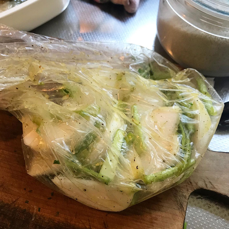 今日の昼用にオリーブオイルと塩と黒胡椒とレモンで