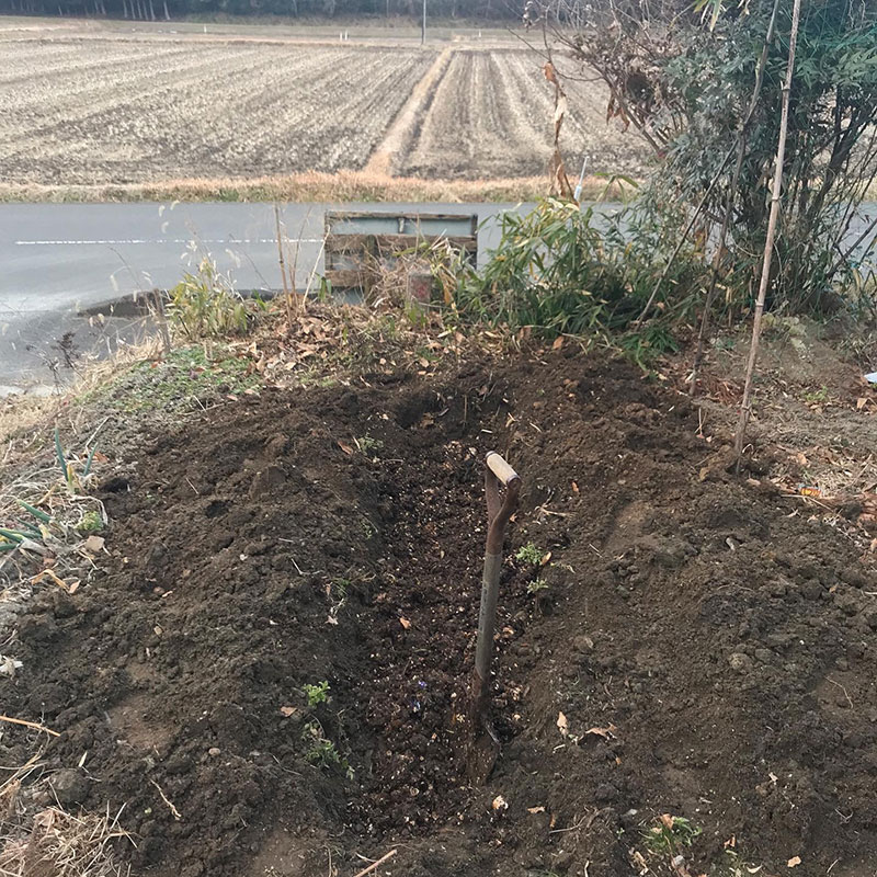 なんだかんだ言ってスコップを使う土仕事が一番疲れるねー。いい土になって今年も美味しい野菜が出来ますように!