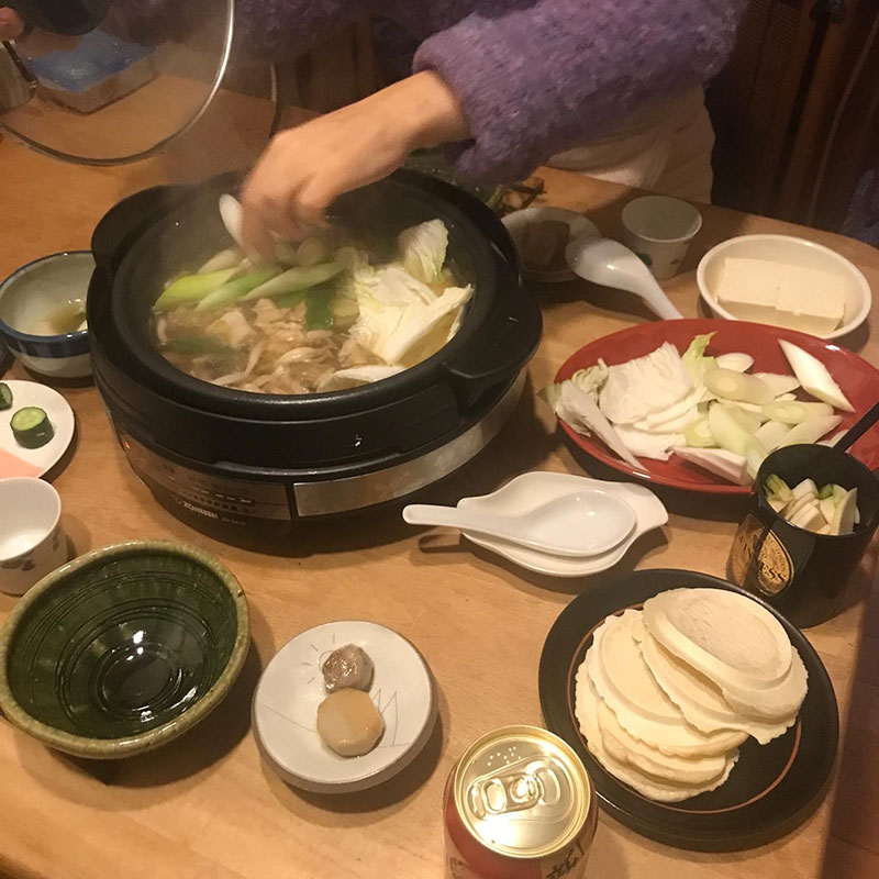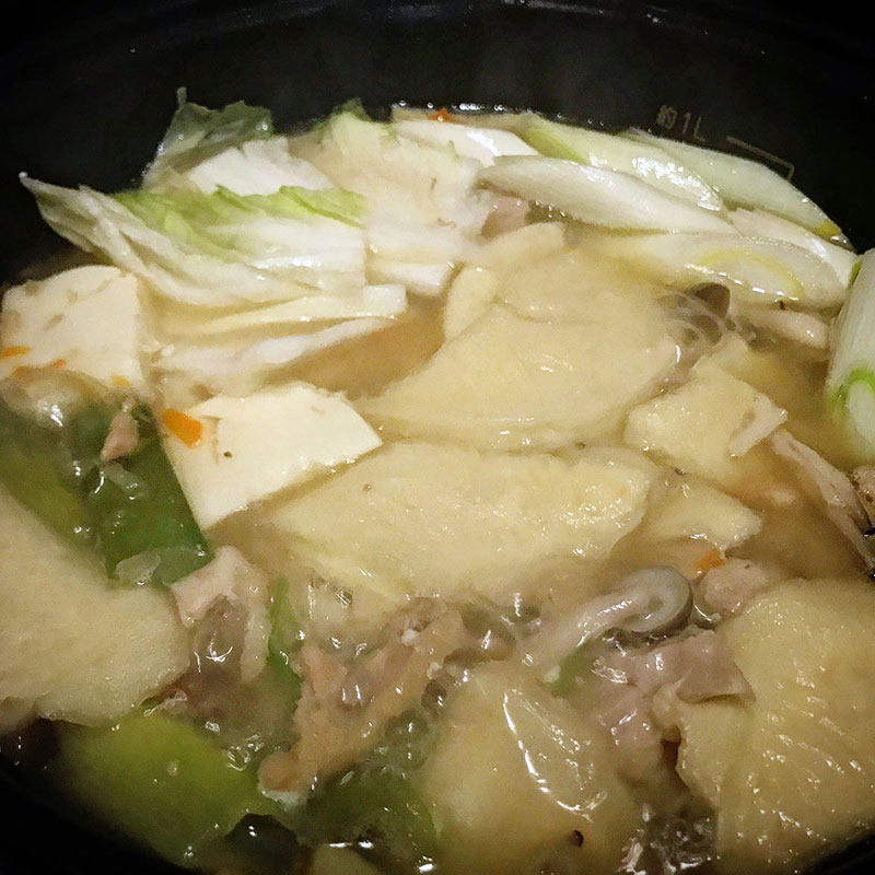今宵はそれで鍋。白菜、長ネギ、鳥肉、豆腐を用意して。