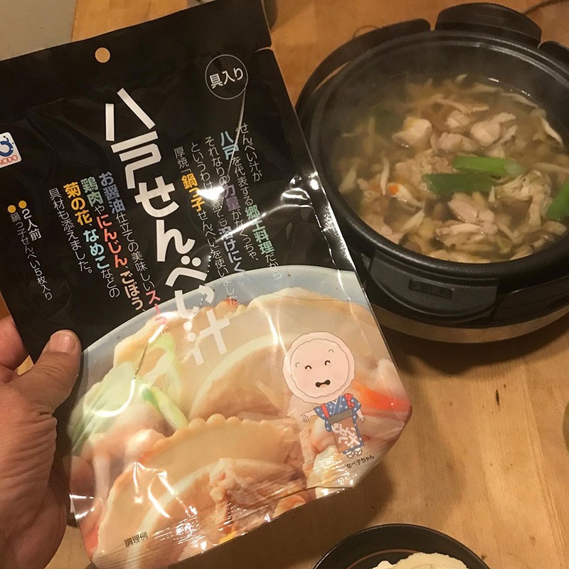東北電力の契約をWeb明細にするとたまるポイントの交換は宮城県の漢方三元豚、焼肉セットにする事が多いんだけどしばらくせんべい汁食べてないなぁと、八戸せんべい汁なべ子ちゃん(具付き)2袋セットにした。