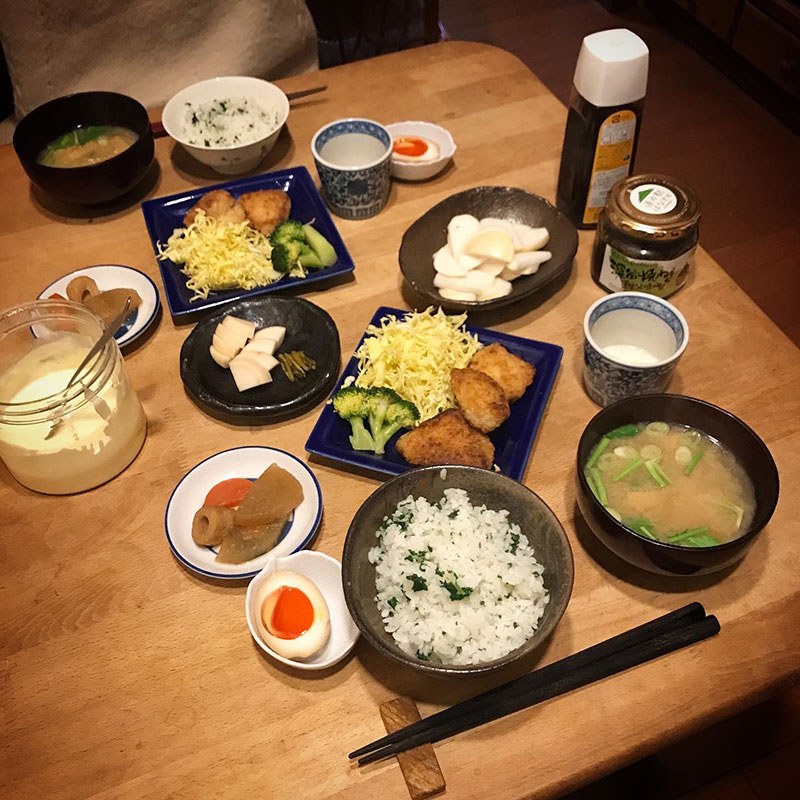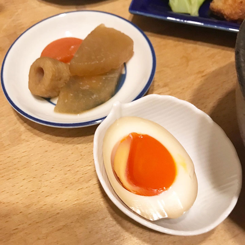 昨日いただいた産みたて卵で仕込んだ味付け半熟卵。黄身がきれい。