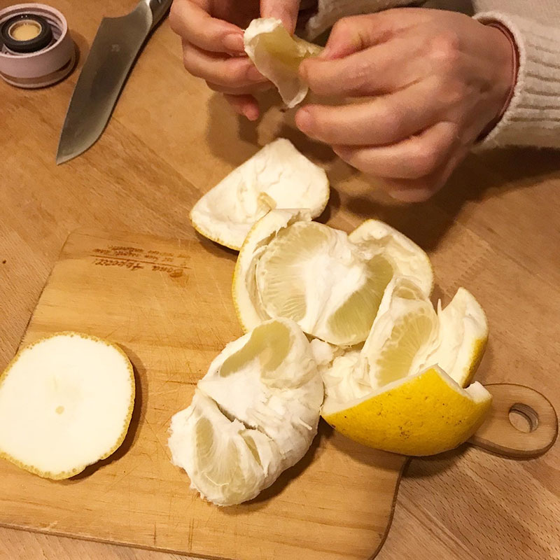 デザートはカミさんのいただきものの高知の文旦。なんて美味しい。