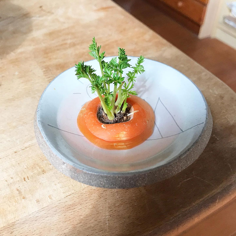 これは料理に使ったにんじんの切り落としを水に浸して5日前に始めた時の写真。