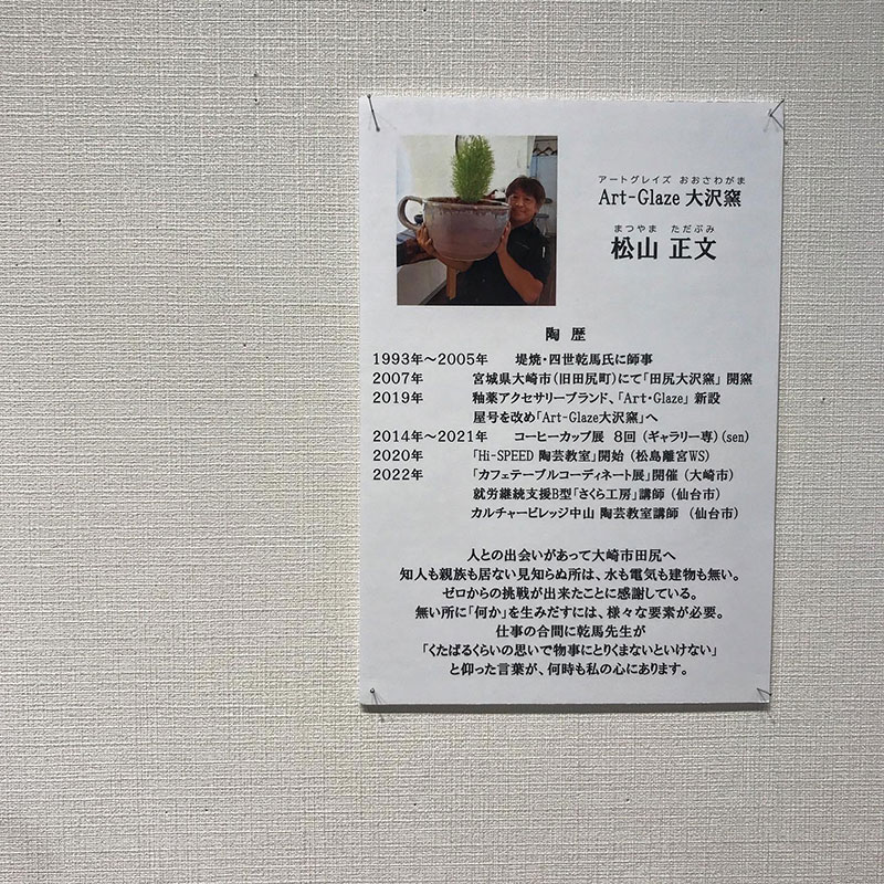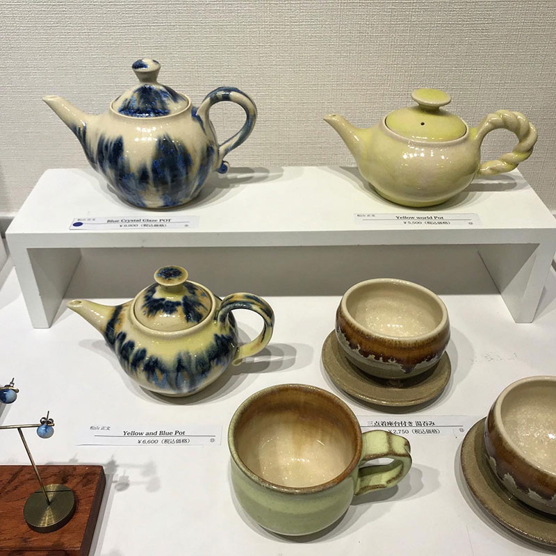友だちの松山正文さん( @oosawagama )も在廊していた。最近、作品を見るたびにグレードアップしてて刺激をもらう。器から垂れた釉薬をアクセサリーに仕立てた作品も惑星みたいで素敵。