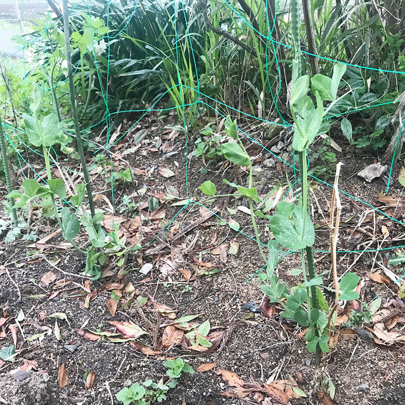 冬を超えて最近の暖かさで大きくなってきたスナップえんどう。うちの畑とえんどう豆の相性悪くてすぐ枯れてしまうけど豆ご飯食べられますように!