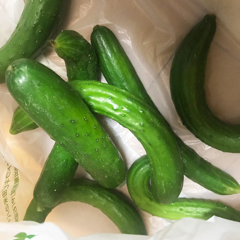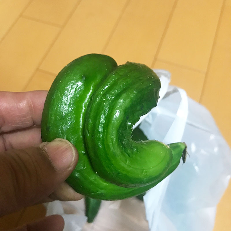 曲がったきゅうりをパズルの様に組み合わせて仕込んでいく。