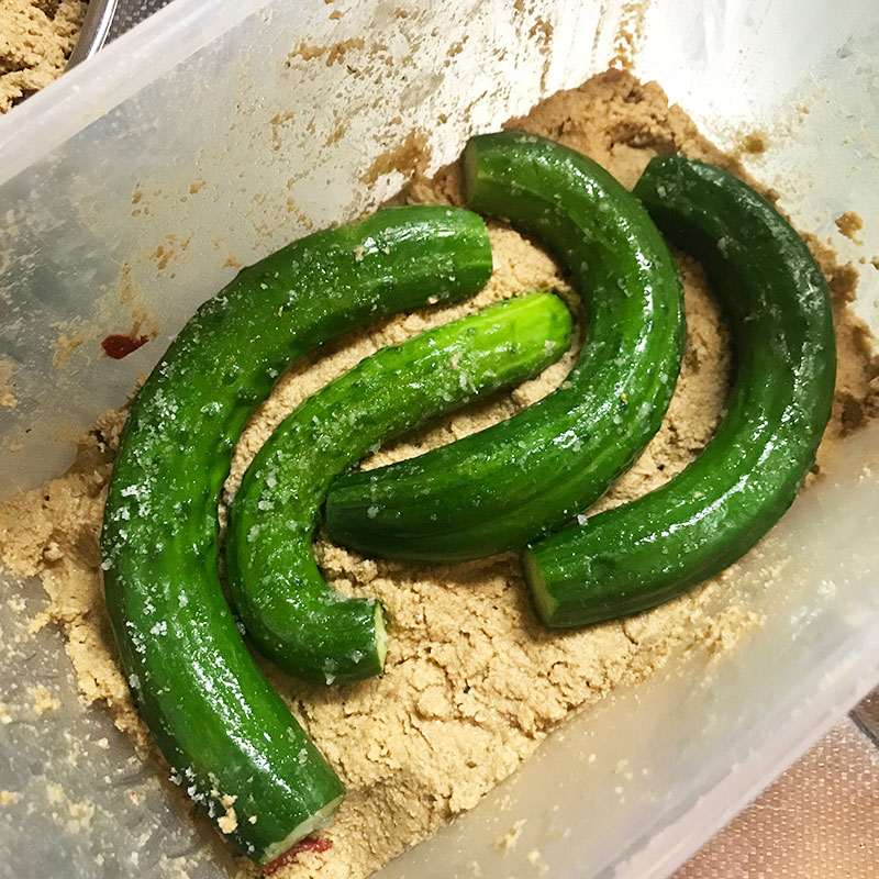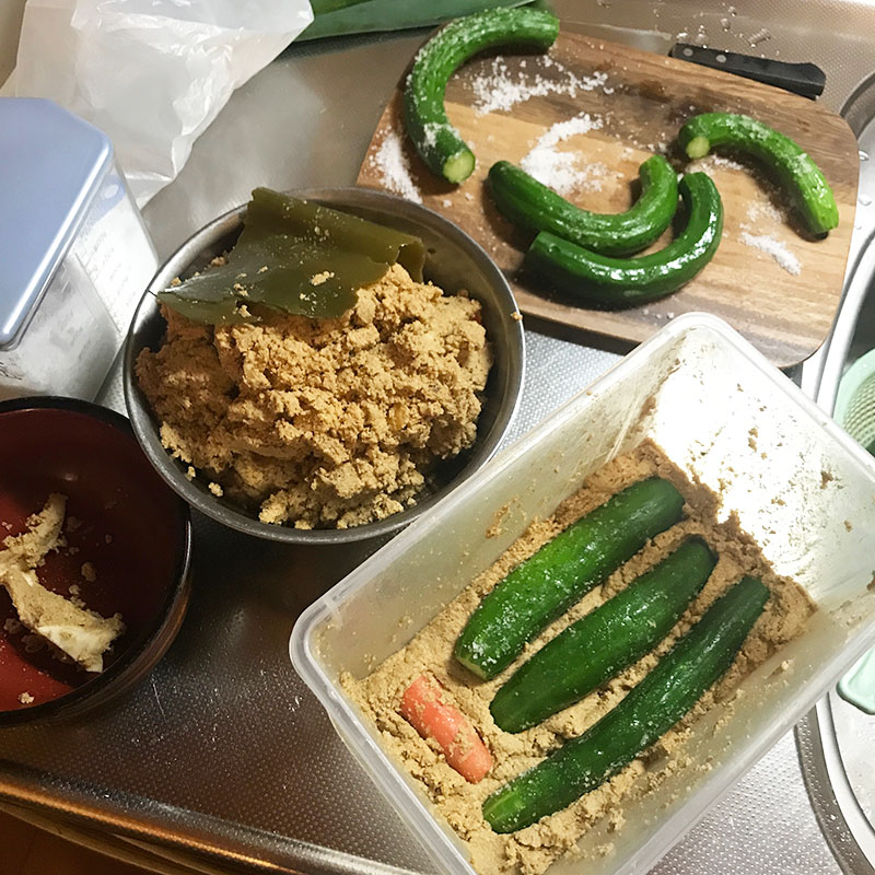 全部をぬか漬けにするために一度、全部ぬか床と今漬けてるもの出して