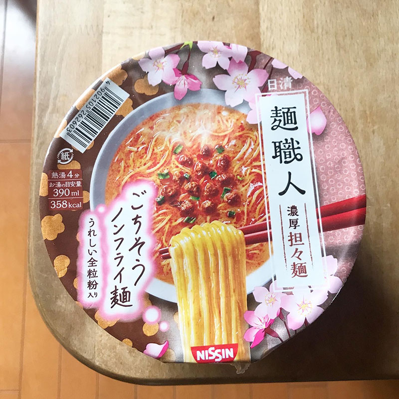 日清 麺職人 濃厚坦々麺 ごちそうノンフライ麺 うれしい全粒粉入り。