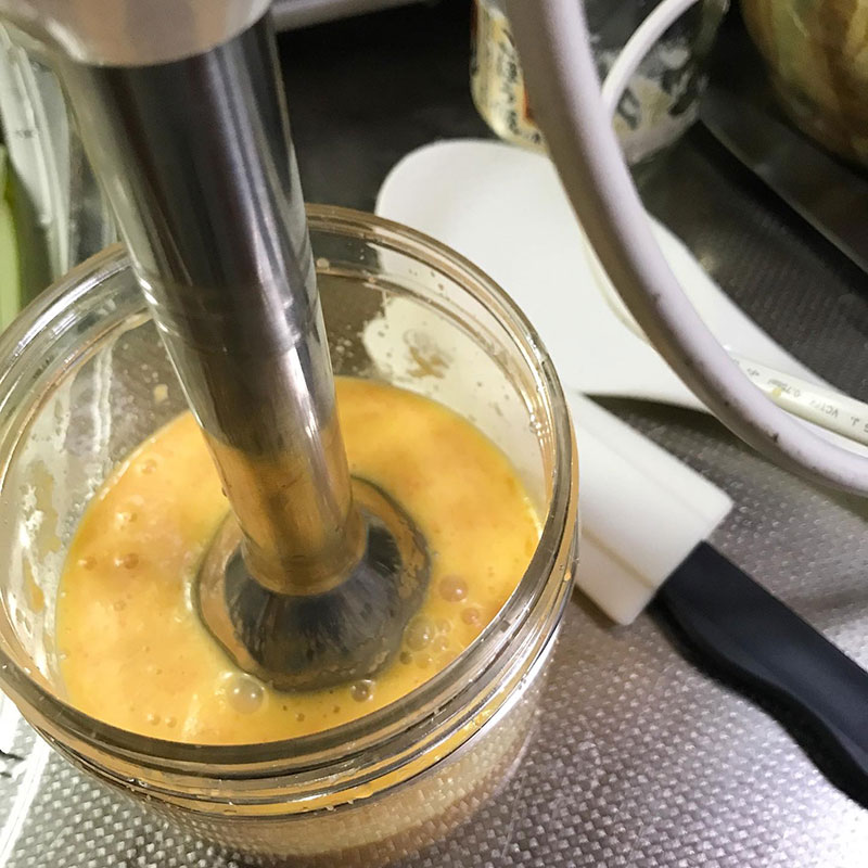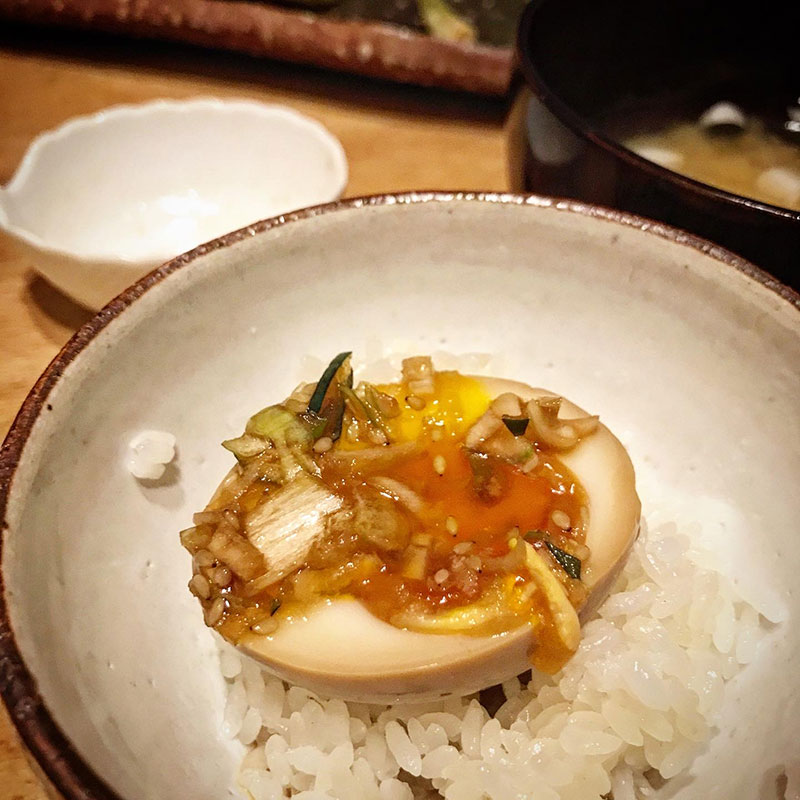 〆に昨日仕込んだ韓国風の半熟味付け卵。