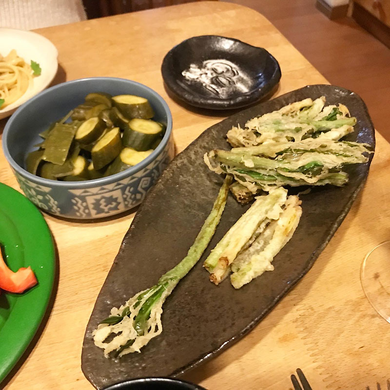 カミさんが山形の行者ニンニクを天ぷらにしてくれた。