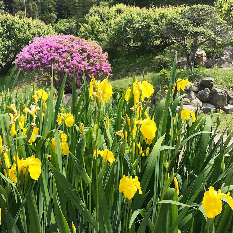 花でいっぱいの金蛇水神社で心静かに手を合わせてきた。