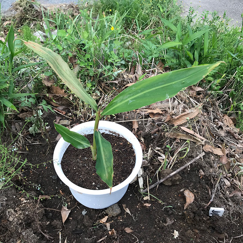 成りに対して鉢が小さく成り過ぎた沖縄、名護市の月桃を株分けして植え直した。