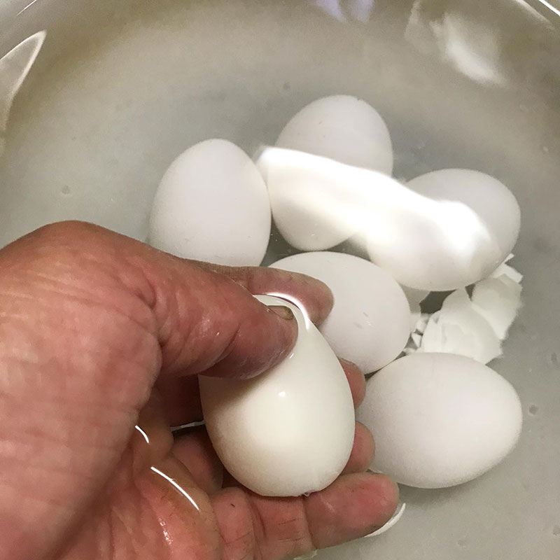 茹でる前に卵の殻のお尻に穴あけたり、茹でた後急冷しても新鮮な卵の殻をきれいに剥くの難しかったけど