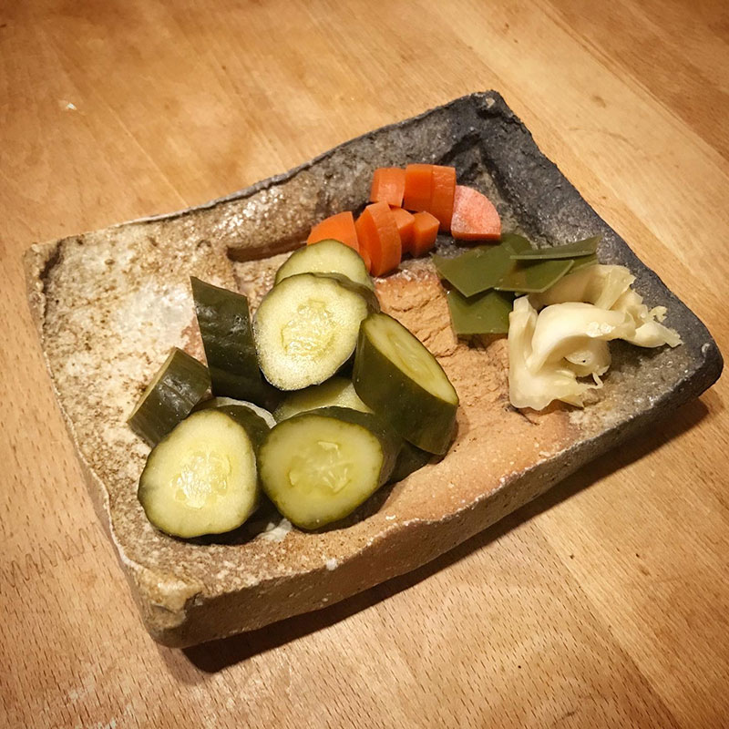 今宵のぬか漬けはきゅうり、にんじん、キャベツの芯、出汁を取った後の昆布。
