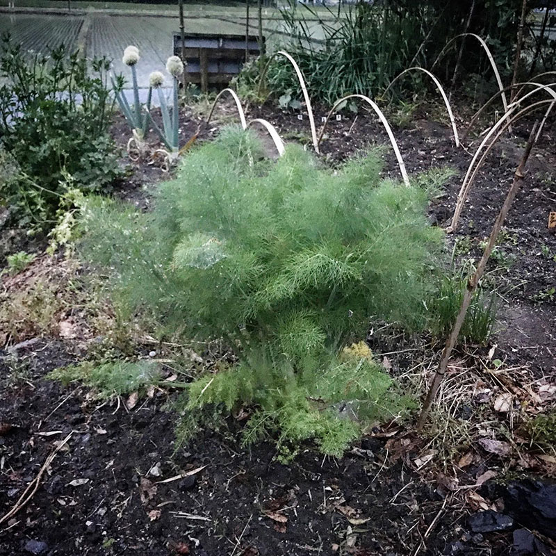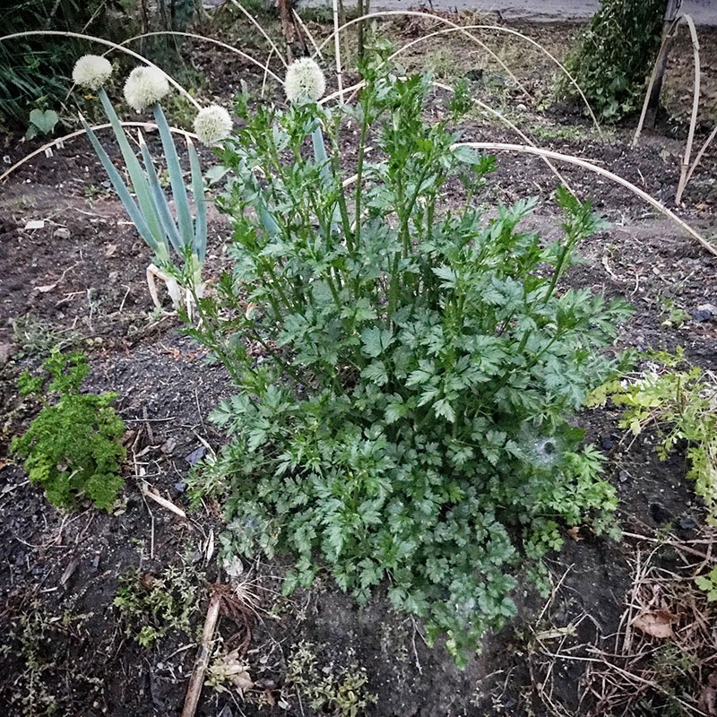同じく冬越ししたイタリアンパセリがどんどん大きくなってる。とう立ちも始まってる。