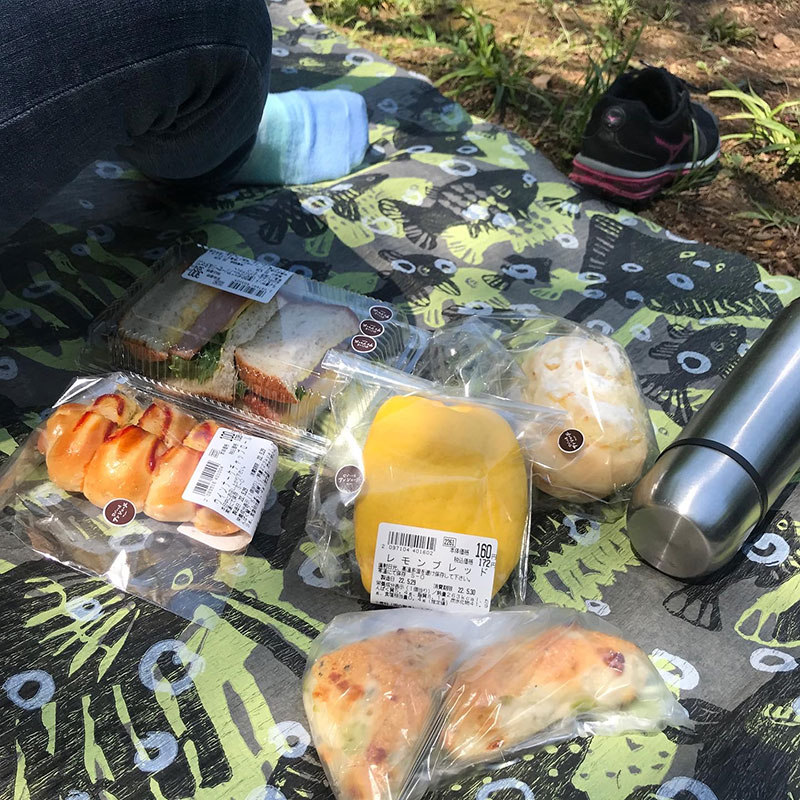 池のほとりでパン屋さんで買ってきた