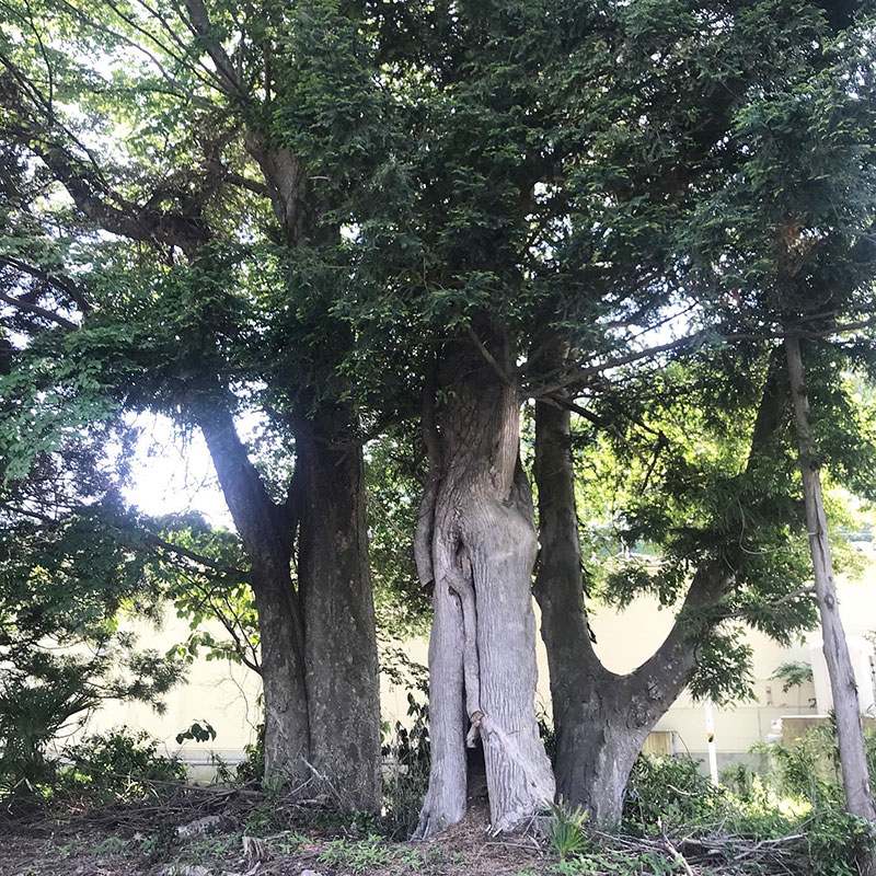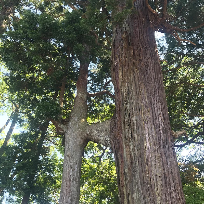 境内には隣の木を枝で刺して突き抜いてる杉があった。2本が一体化してるから夫婦に縁起が良いらしい・笑