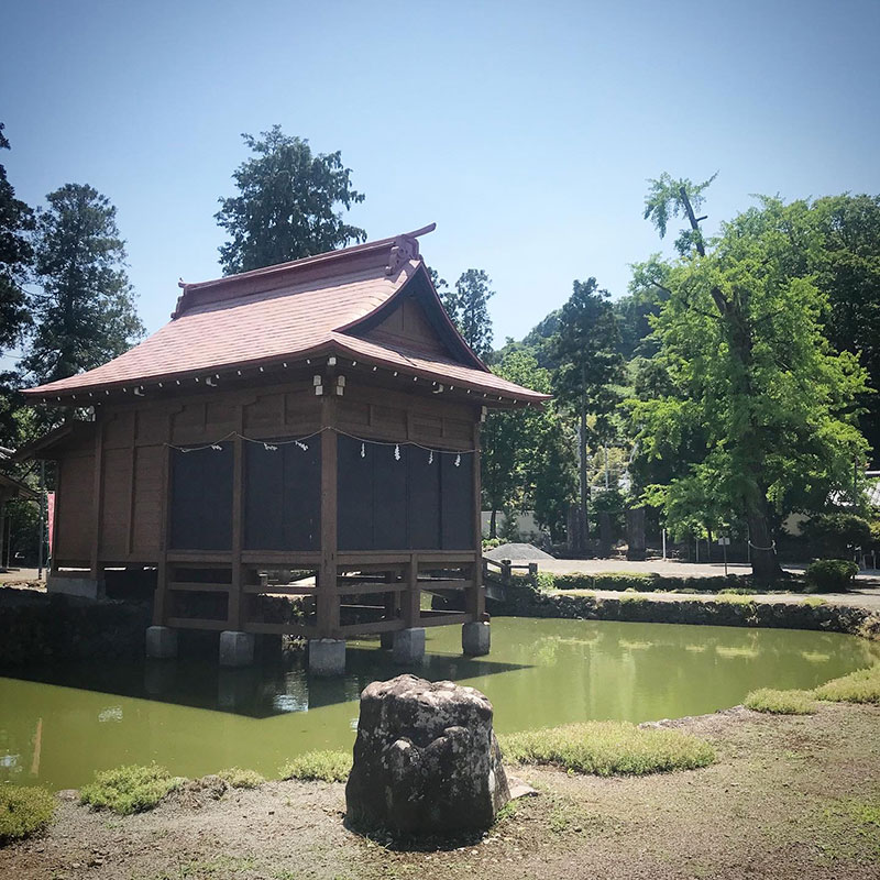 年に一度池の中に架設の能楽舞台が作られて祭事が行われるらしい。