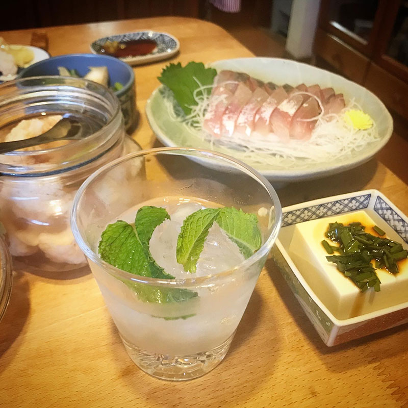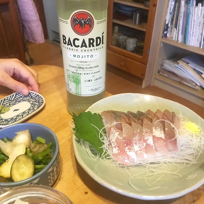 バカルディ クラシック カクテルズ モヒート。庭からミント摘んで。イナダの刺身。