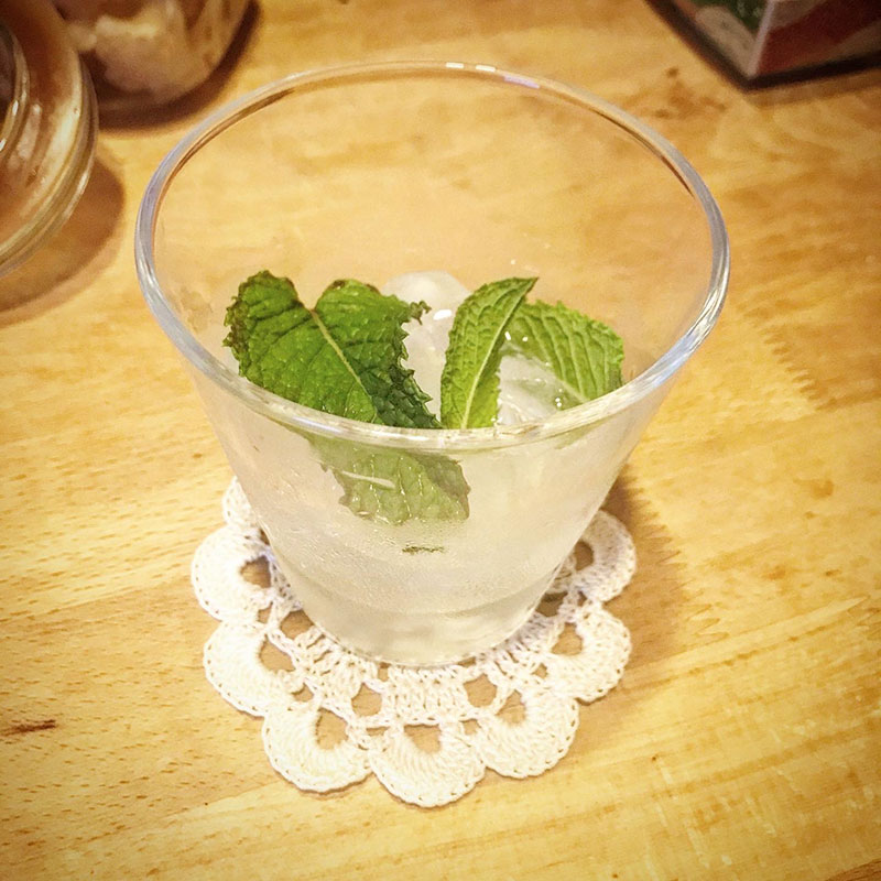 現在、移転再開に向けて準備されている仙台の大好きなフレンチ、シェ・アルモニの由美さんにいただいたお母さん手作りのコースターをモヒートのグラスに。なんか美味しさ倍増。ありがとうございます。
