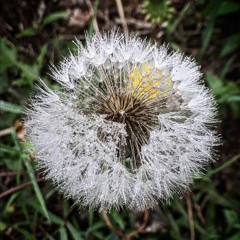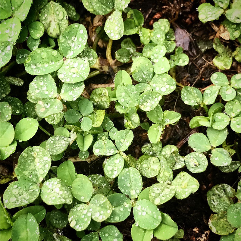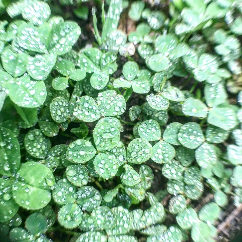 クローバーの葉に乗る雨粒。