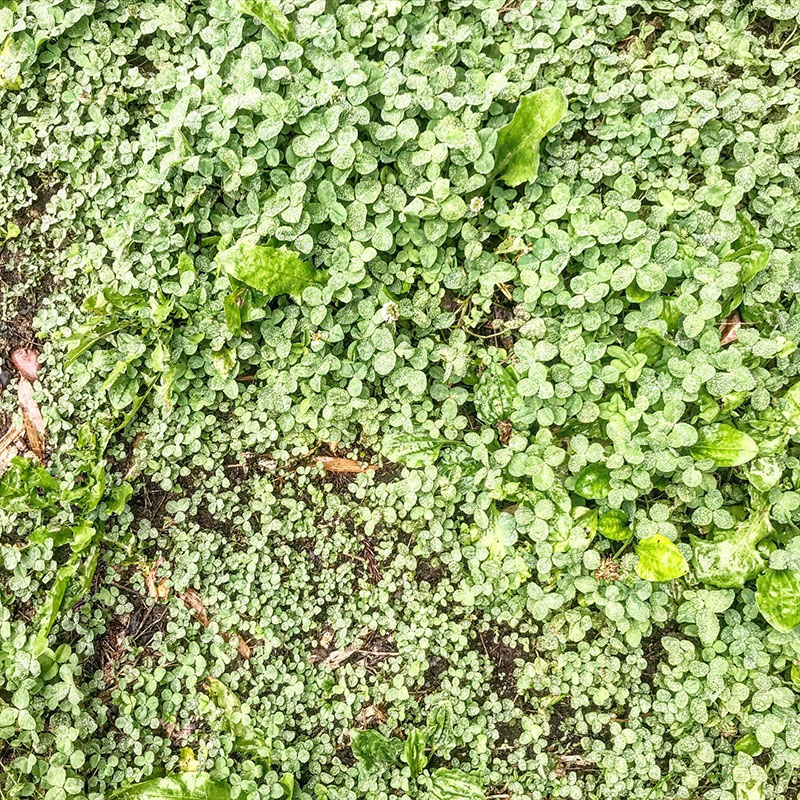 群馬のおばさんのさんの庭は冬でも緑の絨毯のままなのに。