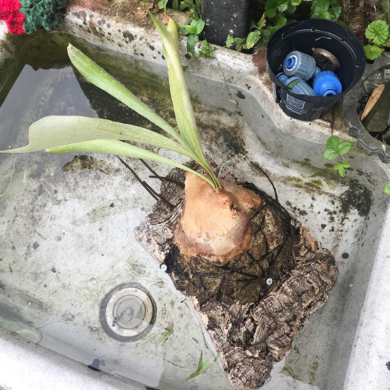 コウモリランを水に浸ける。未だ水やりの仕方で試行錯誤。これまで多分水のやり過ぎ。