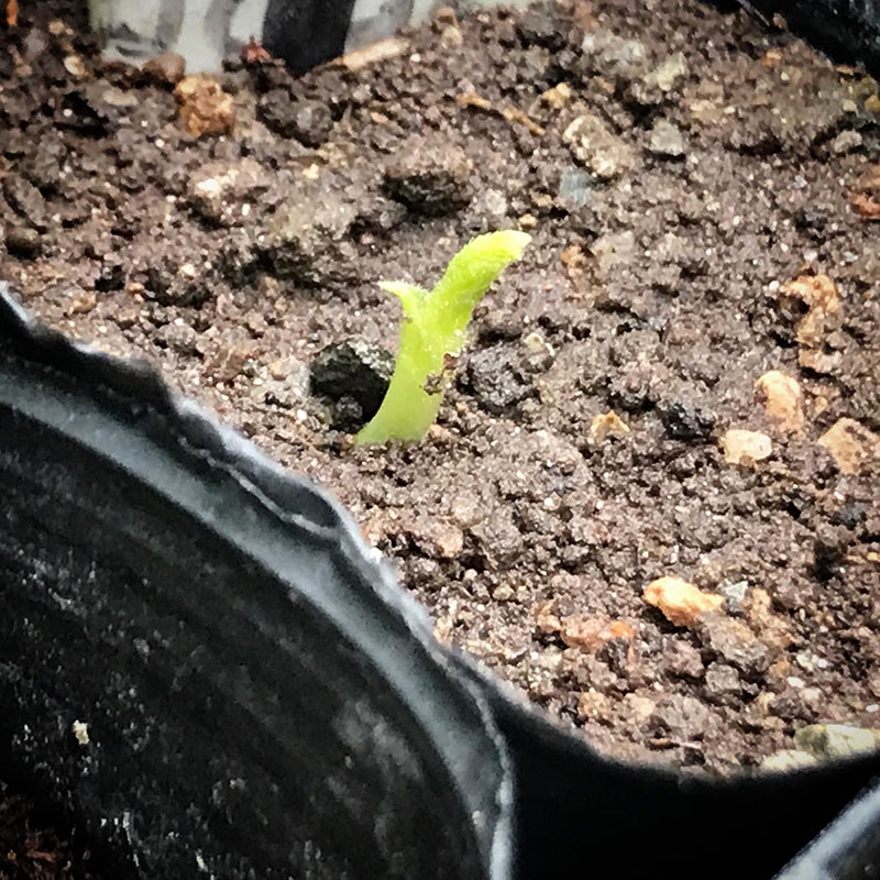 水に浸して芽出ししたものをポットに植えたらやっと芽が出た。