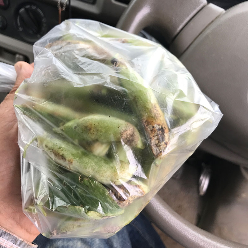 石彫りに行く前にいつも野菜をくれる近所の方のところに持って行ったら
