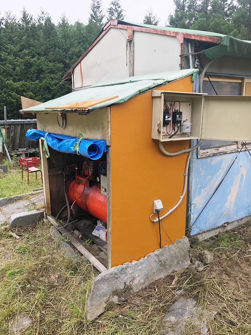 昨日、補修したコンプレッサー小屋の反対側の壁も