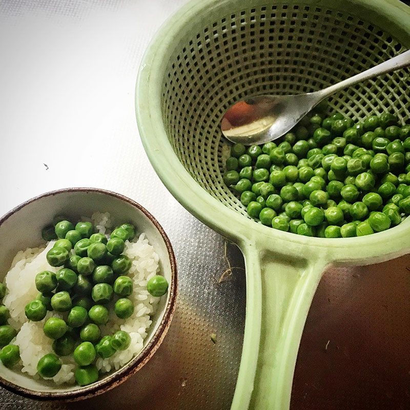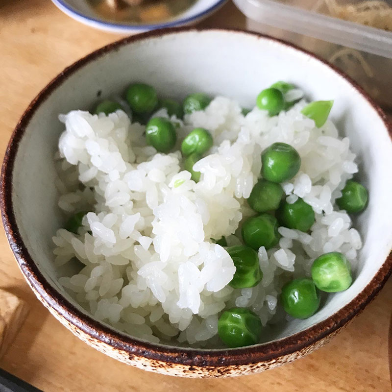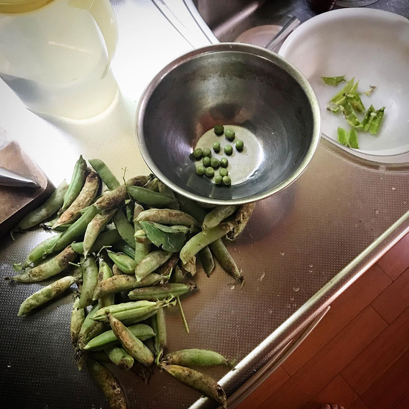 えんどう豆もらった。わらしべ長者か。また豆ご飯食べられる・嬉!