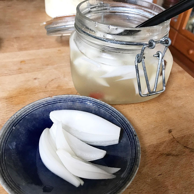 小さな新玉ねぎのピクルスの美味しさにハマってる。追加しても追加してもすぐ無くなる。