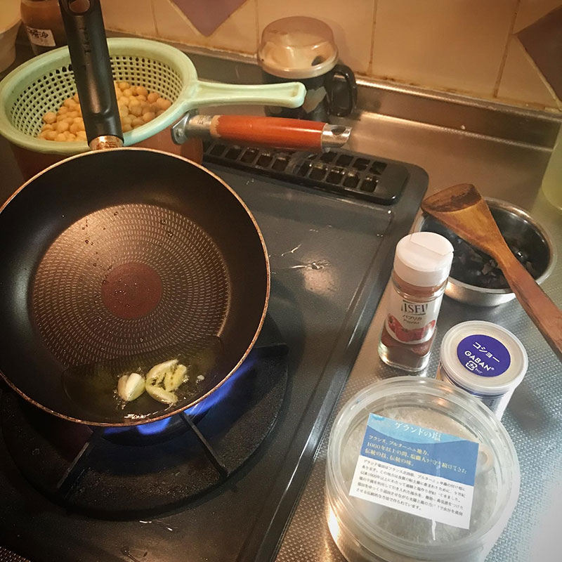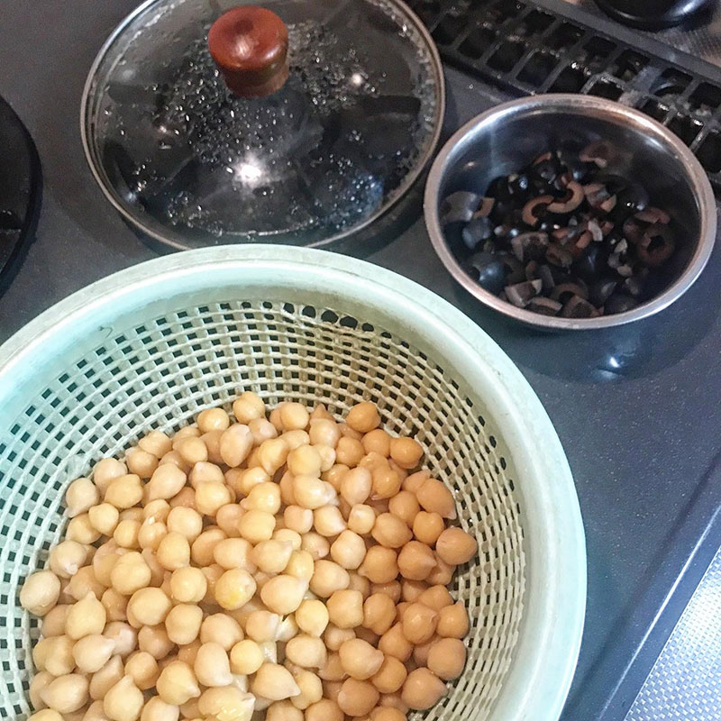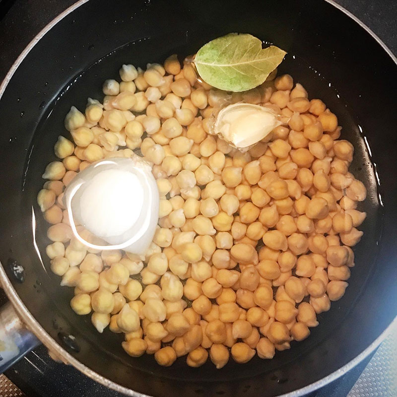 明日の居酒屋我家の一品にスペインの家庭料理、ガルバンソ(ひよこ豆)と黒オリーブの炒め物仕込む。昨日から水に浸しておいたひよこ豆を夕食後に茹でた。浸しておいた水ごと煮る日本のやり方と違ってスペイン風は新しい水に変えて炊く。月桂樹の葉、ニンニク、新玉ねぎは香りづけ。