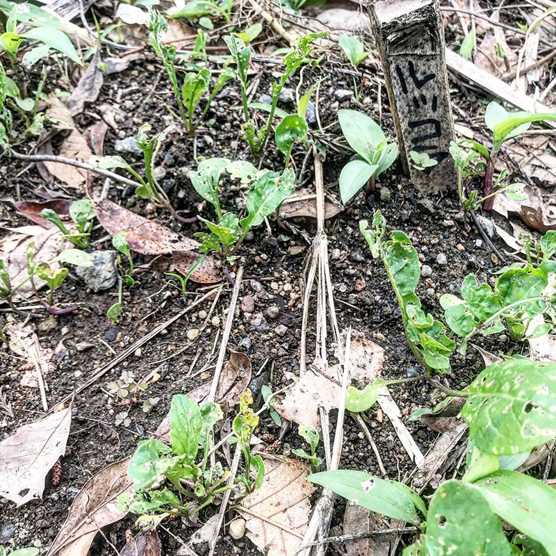 畑のルッコラに小さな虫がいっぱいで