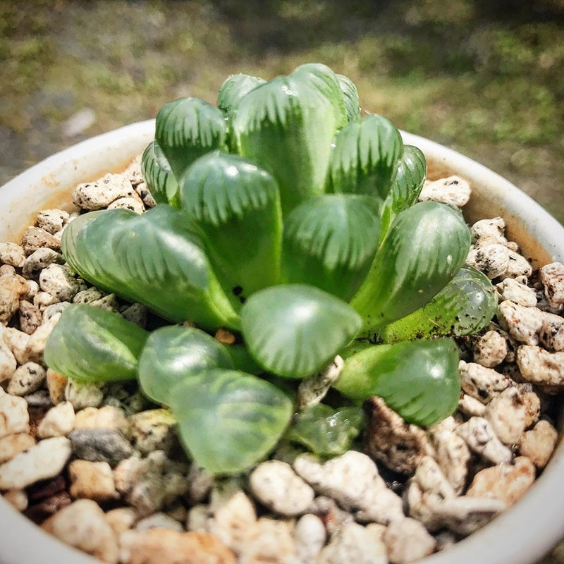 恵さんにもらった多肉植物「ハオルチア オブツーサ」が大きくなって素焼きの鉢が窮屈そうだったので少し大きめの湯呑みに移し替えた。