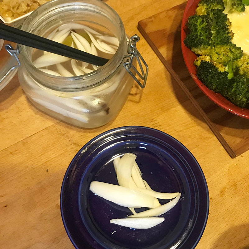 小さな新玉ねぎのピクルス。これ以上新玉ねぎ追加しても漬け液が痛むだろうからこれで終わり。100年腐らないぬか床って最強。すごい文化だよ、ぬか漬け。