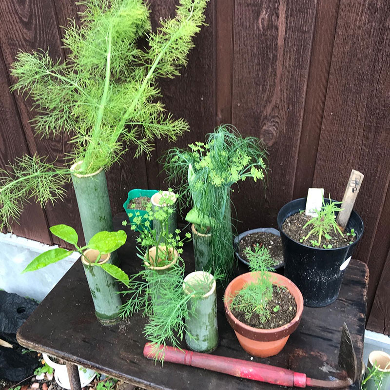 やられたディル、しのびないから竹で作った一輪挿しに挿しておこう。