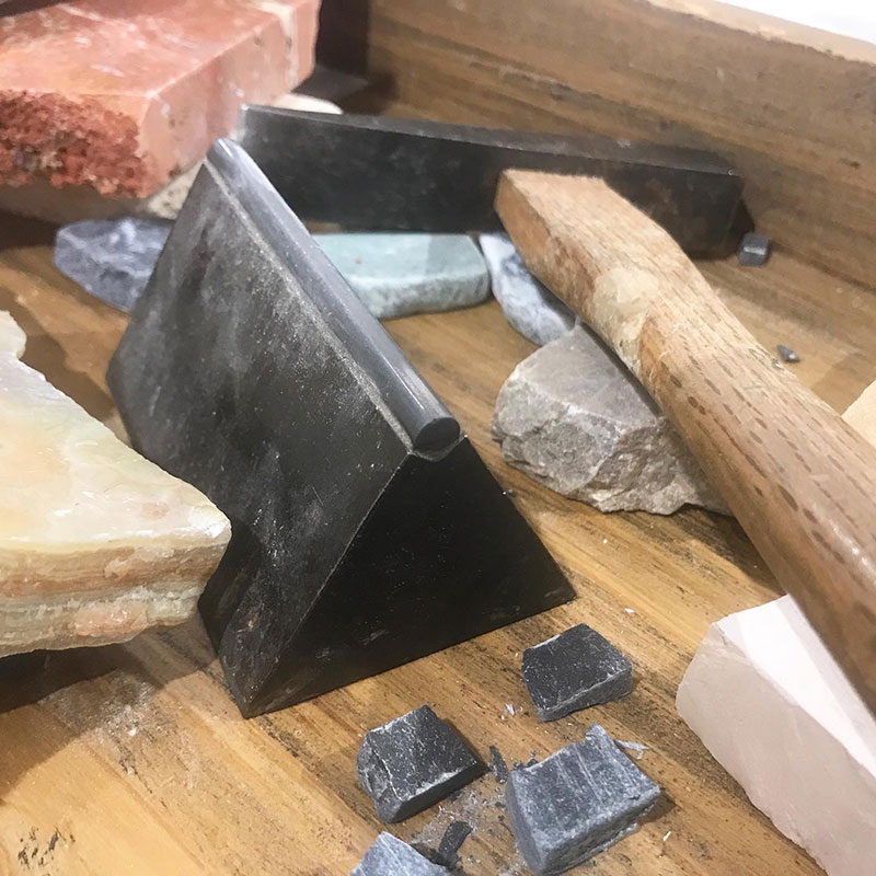それに今日は会場に石を割る道具と割られた石があって興味津々。