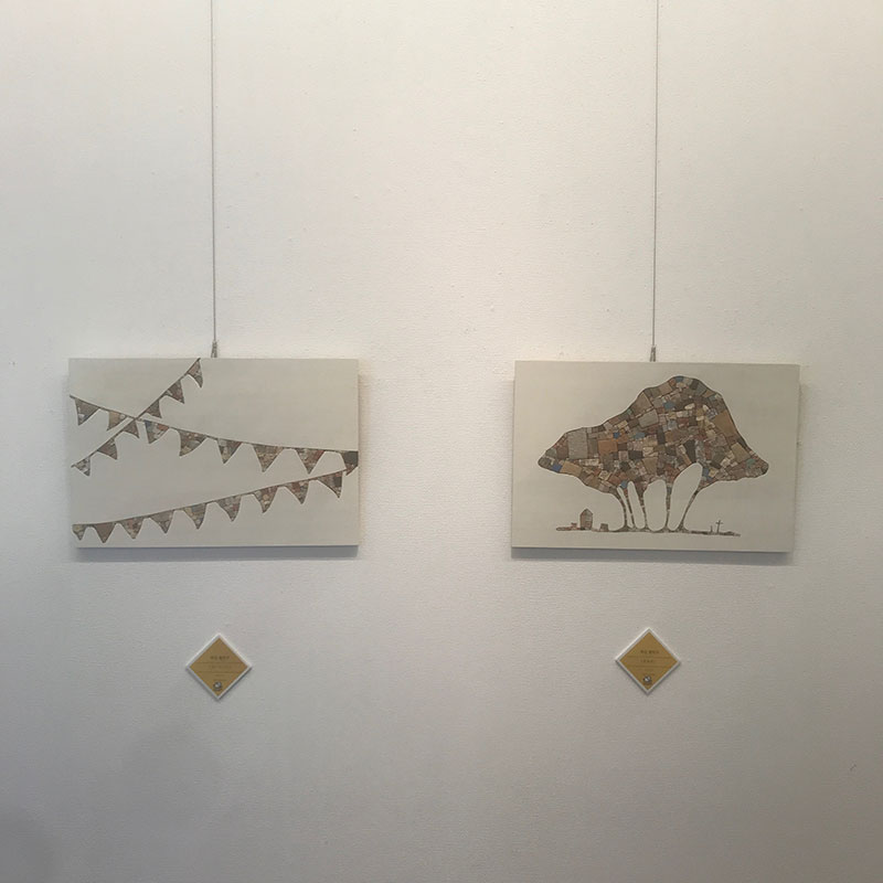 DMにもなっているイグネ(防風林)と家をモザイクで表した「すみか」と言う作品を