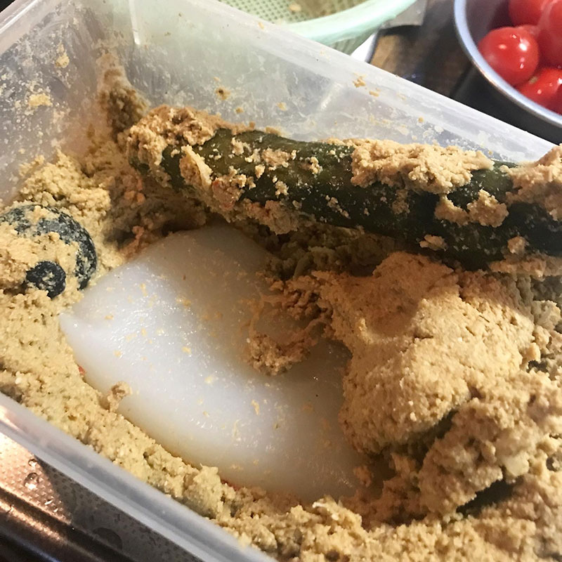 下茹でして臭みとったら水で洗って冷えたら水気を拭いてぬか床へ。楽しみ!