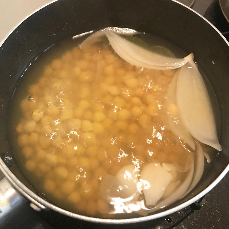 同時進行で昨日から水に浸けておいたひよこ豆を煮て、
